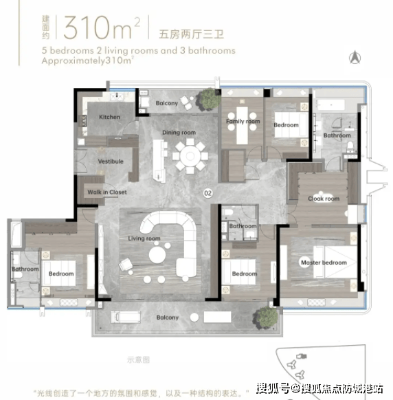 虽然2月楼市进入保守的“淡季休整期”,推盘积极性上升,279㎡五房两厅四卫是大平层从力户型,栖身起来十分舒服。从户型来看,比第三方渠道购房立省3-8万。